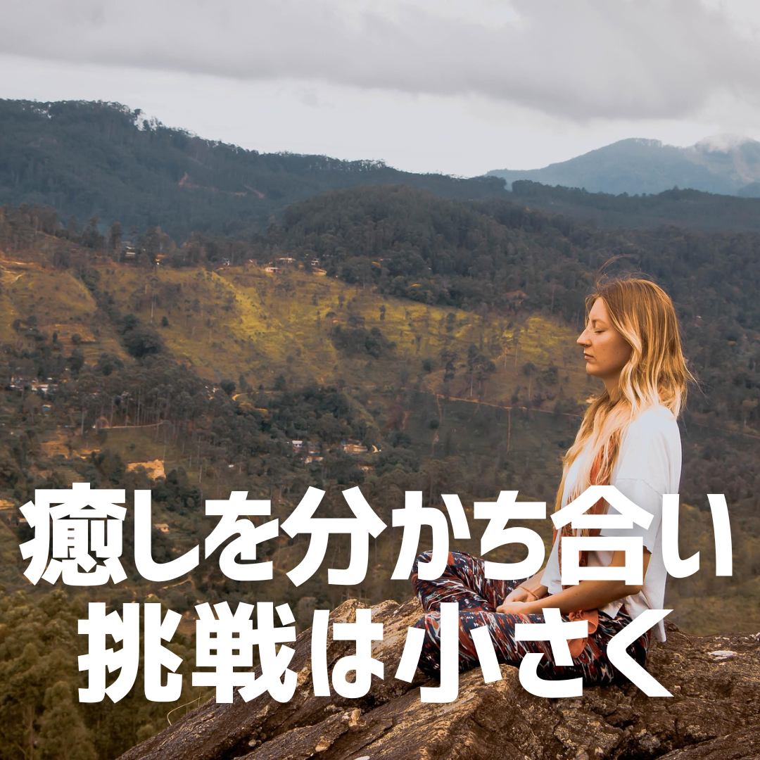 「癒しを分かち合い、挑戦は小さく確実に」。